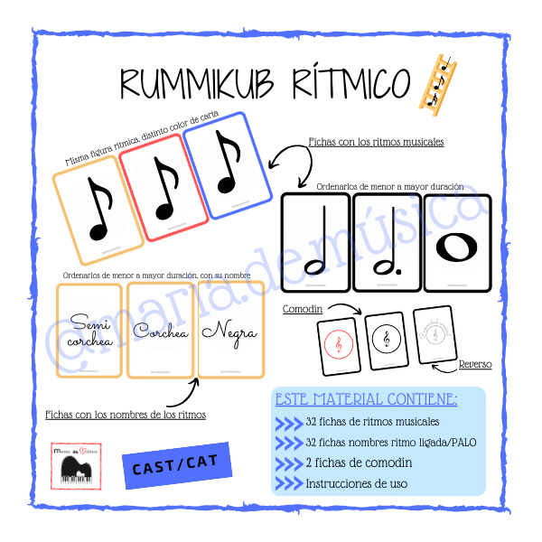Una actividad para que los niñ@s experimenten con las duraciones de figuras y silencios y su valor en determinados compases, utilizándolas en formato de regletas y colocándolas en plantillas de distintos compases.