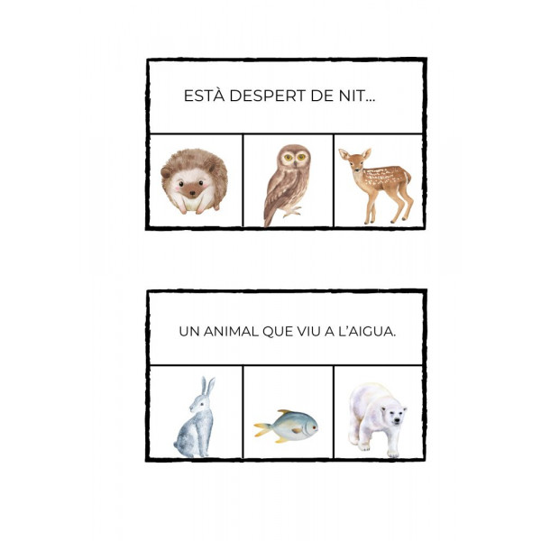 Bingo d'imatges per treballar el vocabulari, cada infant té la seva targeta i haurà d'anar marcant les imatges que hi surtin. Pels més grans que ja dominen la lectoescriptura poden treure la paraula escrita de la bosseta.