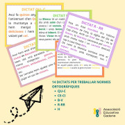 14 dictats curts que permeten consolidar el treball adquirit envers les normes ortogràfiques. En cada targeta hi ha 10 paraules avaluables.