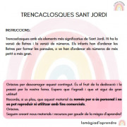 Trencaclosques amb els elements més significatius de Sant Jordi. Hi ha la versió de lletres i la versió de números. Els infants han d'ordenar les lletres per formar les paraules, o ve han d'ordenar els números de més petit a més gran.