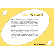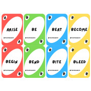 Aquest recurs es juga com el joc tradicional del UNO, però amb una adaptació educativa. Les cartes s’han de llançar seguint el mateix color o la mateixa lletra. A més, cada vegada que un jugador/a tira una carta, ha de dir en veu alta el passat i el participi del verb que apareix al mig (en forma base). Una manera divertida de practicar els verbs irregulars!
