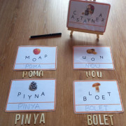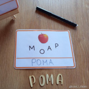 Targetes amb lletres desordenades per confegir i endevinar la paraula. Espai per escriure la paraula i/o crear-la amb lletres mòvils.