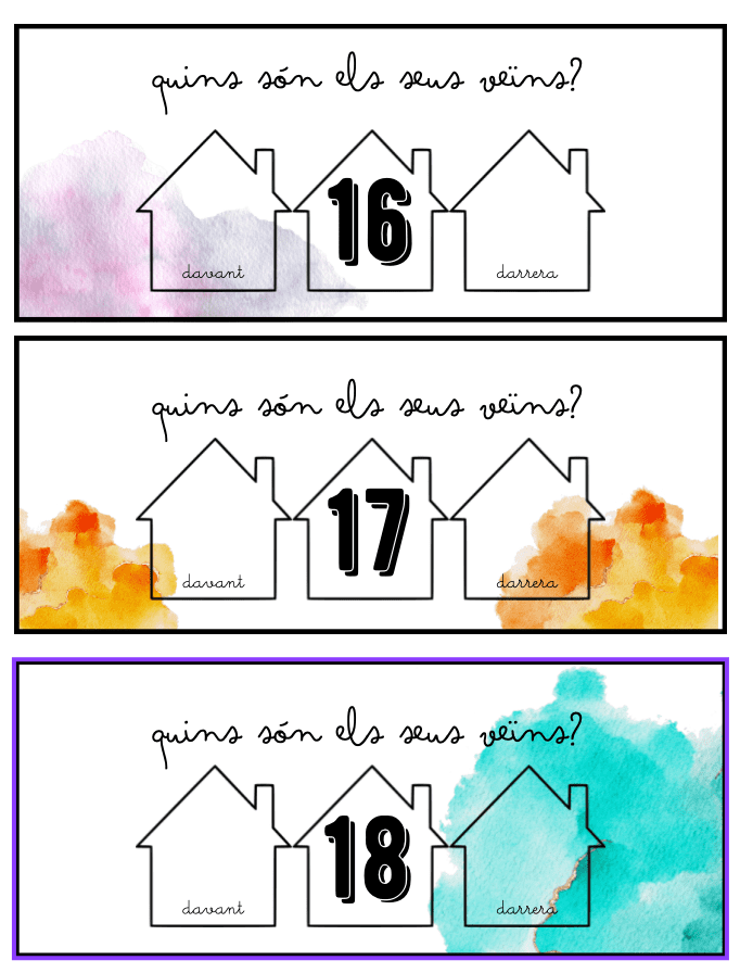 Casetes de nombres veïns per treballar el nombre anterior i posterior.
