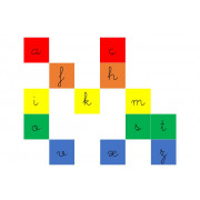 Cada línia comença amb una de les cinc vocals. Cal fer dues còpies: una com a control d'error (o autocorrector) i l'altra per a retallar i ordenar-les. Un cop ordenades, el nen o la nena pot comprovar si ha ordenat les lletres correctament tot mirant l'autocorrector.