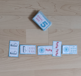 Joc del dòmino qu permet treballar la relació entre quantitat i número escrit.