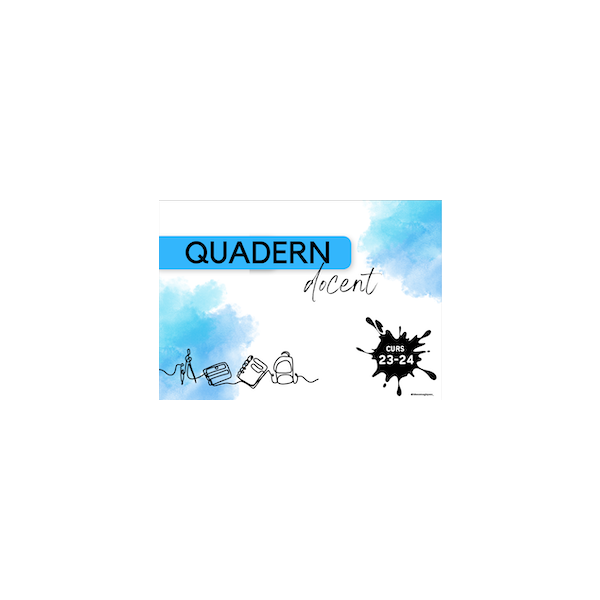 QUADERN DOCENT 22-23 - Diferents colors de portada - Calendari anual - Fulls de notes - Fitxa individual alumne -Fitza registre entrevites - Fulls de programació setmanal Tot en format PDF, en català. [...]