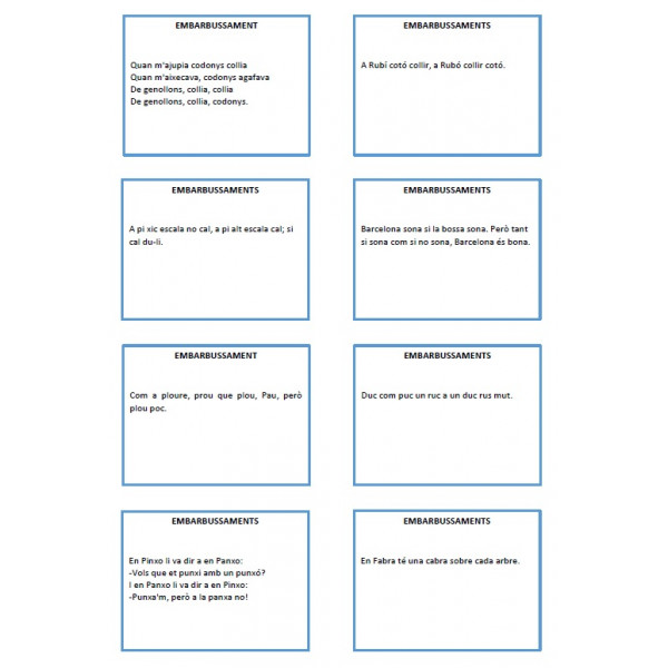 Diàlegs que representen situacions de la vida diària. Consisteix en ordenar els diferents fragments per entendre el diàleg. Cada diàleg