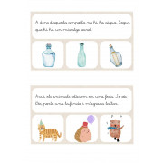 El material tracta de 20 làmines plastificables per treballar la lectura de frases i la seva comprensió . Els alumnes hauran de llegir i escollir la opció correcta entre tres possibilitats.
