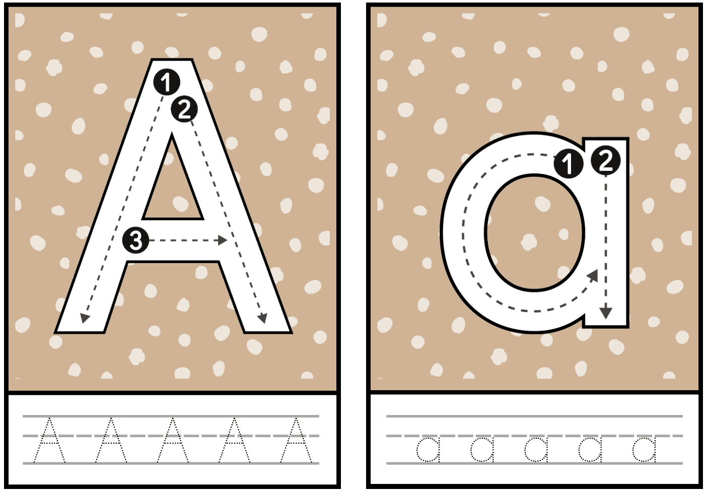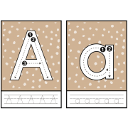 Abecedari per penjar a l'aula i tenir les lletres com a referents visuals. A més a més, incorpora la part de traç de les grafies, sigui en lletra de pal o impremta.