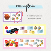 Aquest recurs està dissenyat perquè l'alumnat pugui practicar el càlcul amb monedes i bitllets de manera manipulativa i dinàmica. Cada activitat consisteix en diferents compres de productes, amb les quantitats corresponents al costat, i una sèrie de monedes i bitllets que els/les alumnes hauran d'utilitzar per completar les compres.