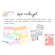 Este material didáctico está diseñado para trabajar las diferentes clasificaciones de los animales de forma visual y manipulativa.