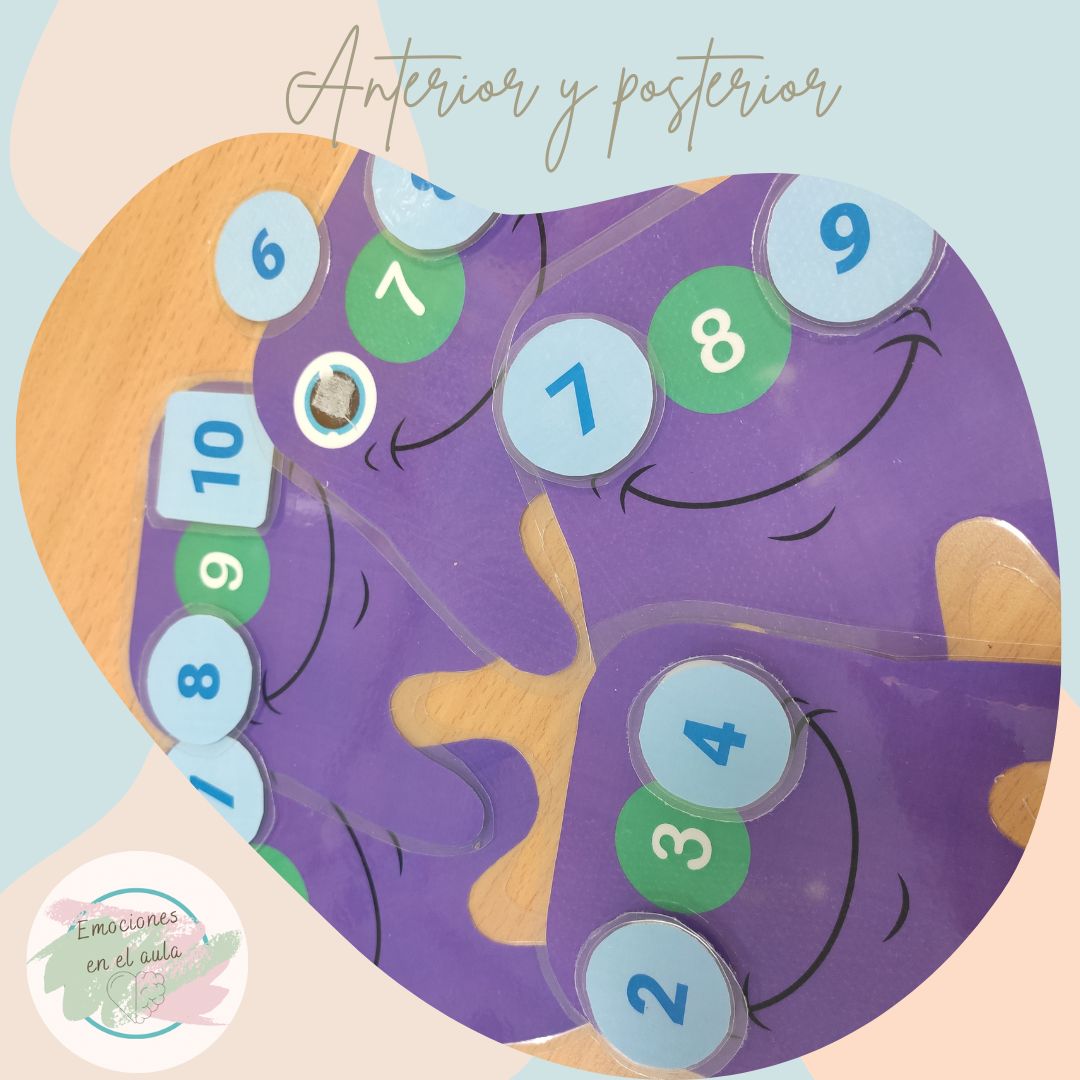 Recurso manipulativo para conocer cuál es el número anterior y posterior. Deberán poner los "ojos" que le correspondan al monstruo.