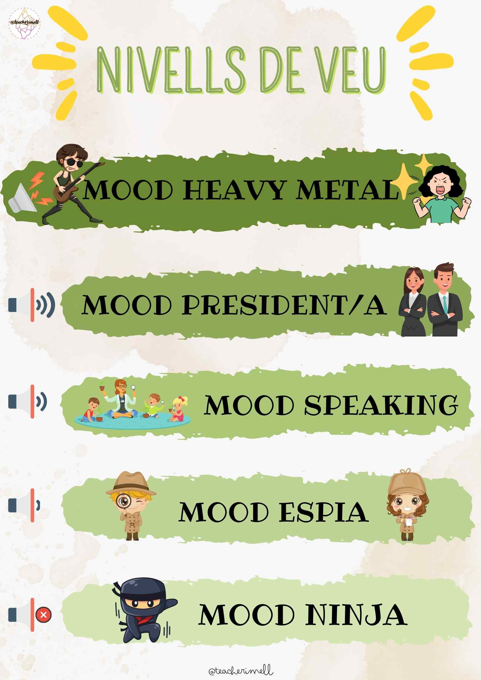 Per treballar a l'aula els moods de veu ( o to de veu) a l'aula.