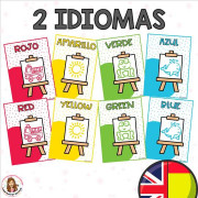 Estos carteles incluye tanto una imagen como el nombre del color. Además, este material está tanto en español como en inglés, favoreciendo en aprendizaje de ambos idiomas, si así lo deseas.
