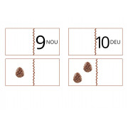 En el apartado de matemáticas se trabaja del número 1 al 10 y lo hace con elementos naturales de otoño como piedras, hojas y piñas. Para poderlo reproducir también con los materiales reales, de manera manipulativa.