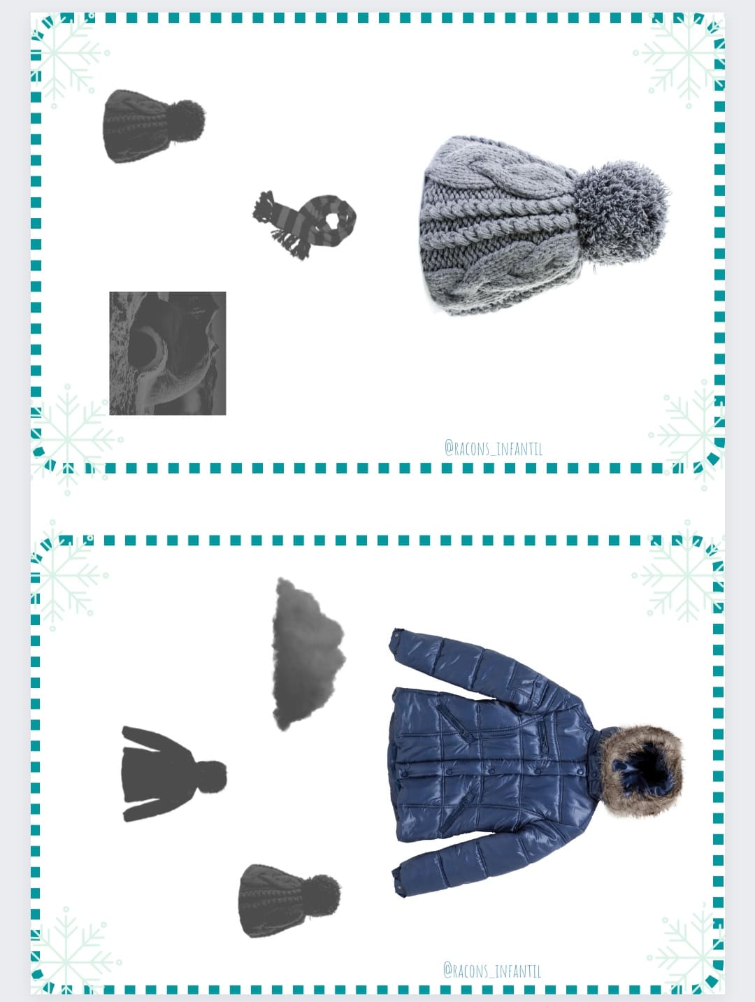 Recurs per a que relacionin la imatge amb la seva ombra, inspirat en l'hivern. Es pot fer servir en racons d'aula o bé en gran grup també.