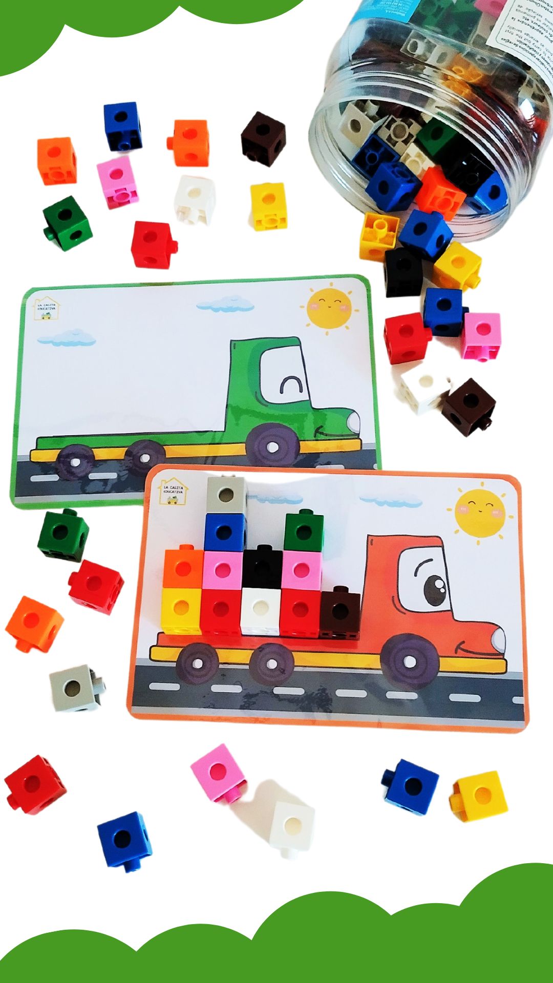 Recurso manipulativo a través de policubos con el que los peques aprenden de manera divertida. Trabajamos la motricidad fina, la atención visual, la concentración y los colores.