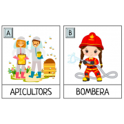 26 targetes amb la lletra, la imatge i la paraula del ofici amb la lletra de pal.