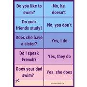 Printable cards to match questions in present simple with short yes/no answers.