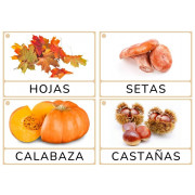 Bits para trabajar el vocabulario del otoño con imágeneres reales. Se presentan en formato de targeta (4 por página) para imprimir-los en DIN A4 o cualquier otra medida proporcional, con la opción de impimir por detrás la palabra para poder leerla mientras se muestra la imagen por delante.