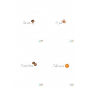 Targetas de vocabulario de otoño con imágenes reales para propuestas de aprendizaje autónomo de lectoescritura. Se presentan en formato de 4 targetas por página para imprimir. Se pueden utilizar para trabajar el vocabulario oralmente en formato de bits o imprimiendolás a doble página para mostrar la parte delantera mientras se lee la palabra por detrás.