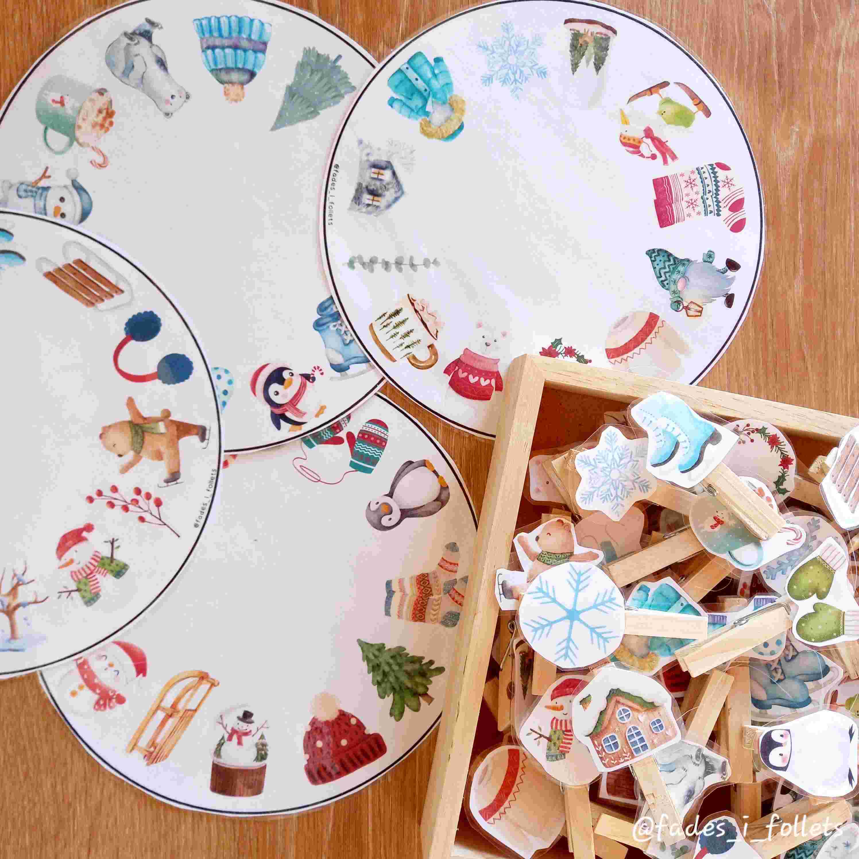 4 ruedas con imágenes de invierno e imágenes sueltas para que lxs