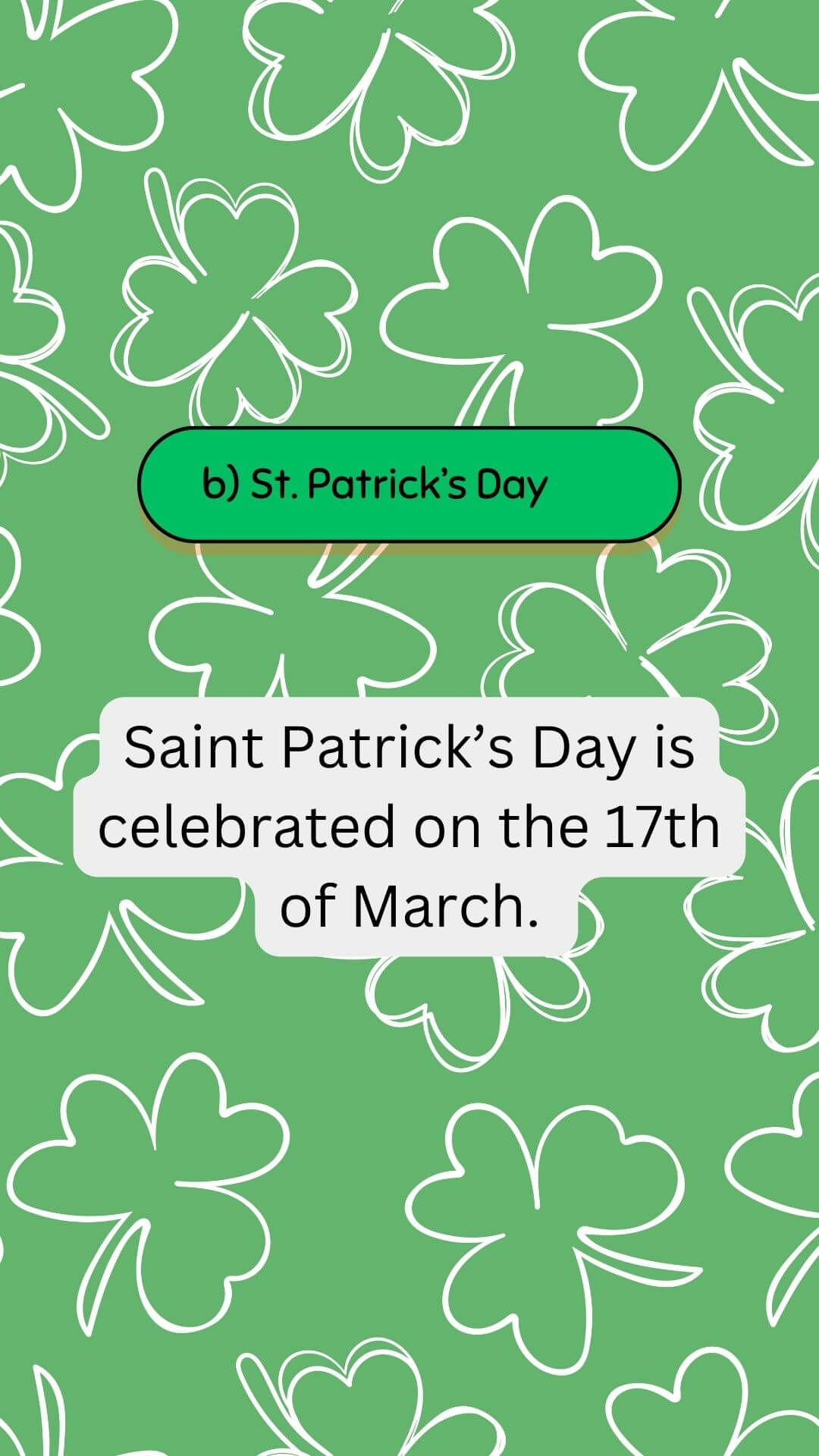 St. Patrick's Quiz en video para proyectar en pizarra digital con 12 preguntas y respuestas.