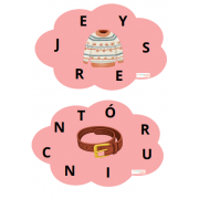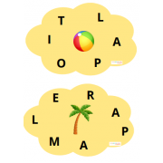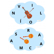 Nubes de palabras es un recurso para que nuestros/as peques formen palabras con algunas pistas (Mobiliario de casa, instrumentos, verano, animales...)