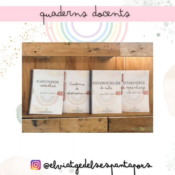 QUADERN DOCENT 22-23 - Diferents colors de portada - Calendari anual - Fulls de notes - Fitxa individual alumne -Fitza registre entrevites - Fulls de programació setmanal Tot en format PDF, en català. [...]