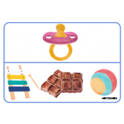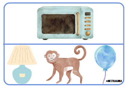 A cada targeta trobem una imatge a la part superior. A sota d’aquesta, 3 més. Les criatures han de buscar i assenyalar quina és la imatge que la seva síl·laba inicial SONA igual que la primera de la destacada.