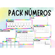 Pack números compuesto de 41 páginas en el que se incluyen plantillas base para trabajar valor posicional, descomposición, lectura, redondeo, trabajo con bloques multibase, ABN y operaciones.