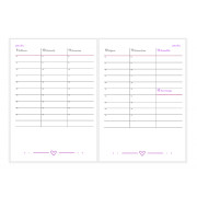 Agenda a setmana vista. Inclou registres d'horari, calendari, planificador anual, planificador setmanal, etc.