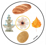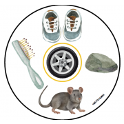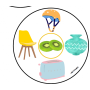 Cal fixar-se en la imatge central ubicada dins del cercle groc. Han de pensar quin és el seu so inicial i marcar (retolador, pinça. etc...) quines altres paraules roda comencen pel mateix.
