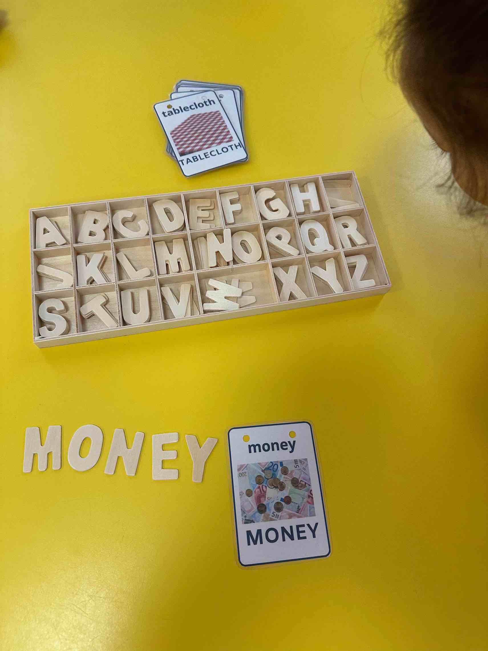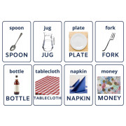 Se trata de 14 tarjetas que se pueden unir con anillas y que sirven para copiarlas con letras manipulables. Con ellas los peques aprenderán a reconocer las palabras globales referentes al restaurante y además podrán darse cuenta que algunos de los sonidos en inglés no corresponden a las letras que escribimos