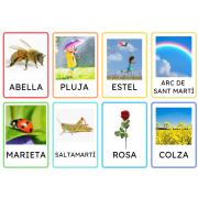 Elaboració del material: Imprimir, retallar i plastificar les flashcards. Es recomana fer un forat a una cantonada i posar-hi una anella per tenir juntes totes les flashcards o bé guardar-les juntes en un sobre o amb una goma elàstica.