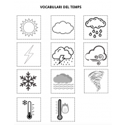 En el archivo encontrarás imágenes sobre el tiempo para recortar, así como sus respectivos nombres en castellano y valenciano para relacionar o recortar y unir con las imágenes.