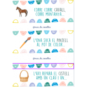 Es pot fer servir en gran grup, petit grup... i és un joc de consciencia fonològica oral del programa de l'Enriqueta Garriga. Dues versions:
