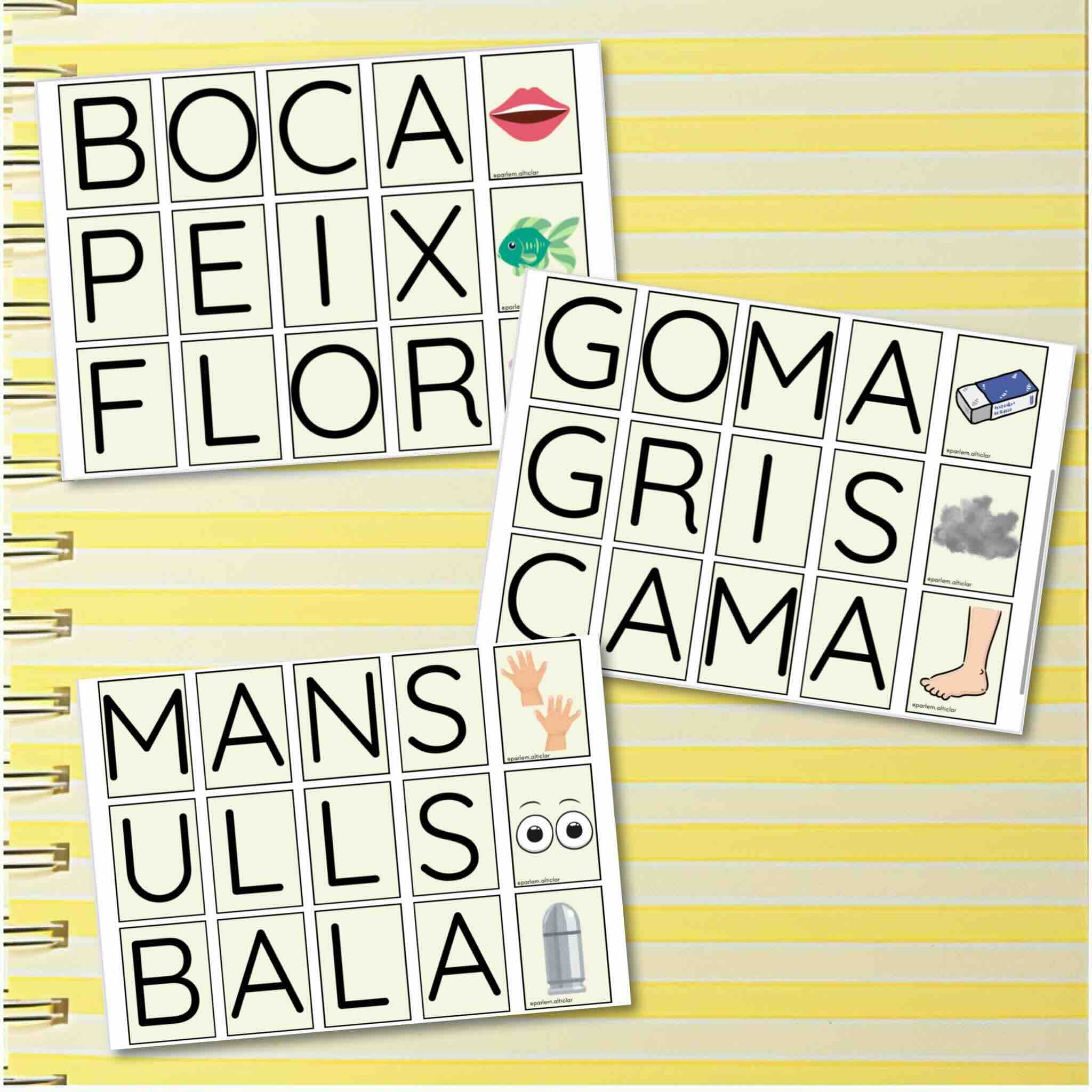La idea és que retallis cada casella i les enquadernis, de tal manera que l'alumne/a ha d'anar buscant les lletres fins aconseguir la paraula que surt a la imatge.