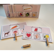 Proposta: Primer, amb grup sencer o mig grup, la mestra modelarà el joc, tot posant una pinça, una fusteta...en la imatge que comenci per la mateixa síl·laba (veure foto). Després, un cop treballat, es pot deixar en un racó més autònom.
