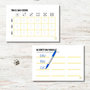 És imprimible i retallable, es recomana imprimir-lo amb cartolina. L'extrem dels cartronets és una bastida i serveix de guia perquè sigui un material autocorregible.