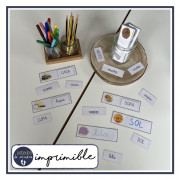 20 targetes de vocabulari sobre els elements de la tardor. Lletra de pal i lletra lligada.