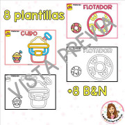 Las plantillas se encuentran a color y en blanco y negro. Su tamaño es A4 pero puede ajustar su impresora para imprimir a un tamaño menor. Igualmente, incluye el nombre de cada imagen.