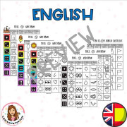 Contenido: Incluye un total de 12 plantillas individuales, 6 a color y 6 en blanco y negro, 3 en español y 3 en inglés, con los siguientes elementos para dibujar: castillo de arena, polo y sol.