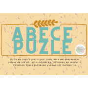 Puzle de cuatro piezas por cada letra del abecedario. Letras de varios tipos: mayúscula, minuscula de imprenta, minúscula ligada punteada y minuscula manuscrita.
