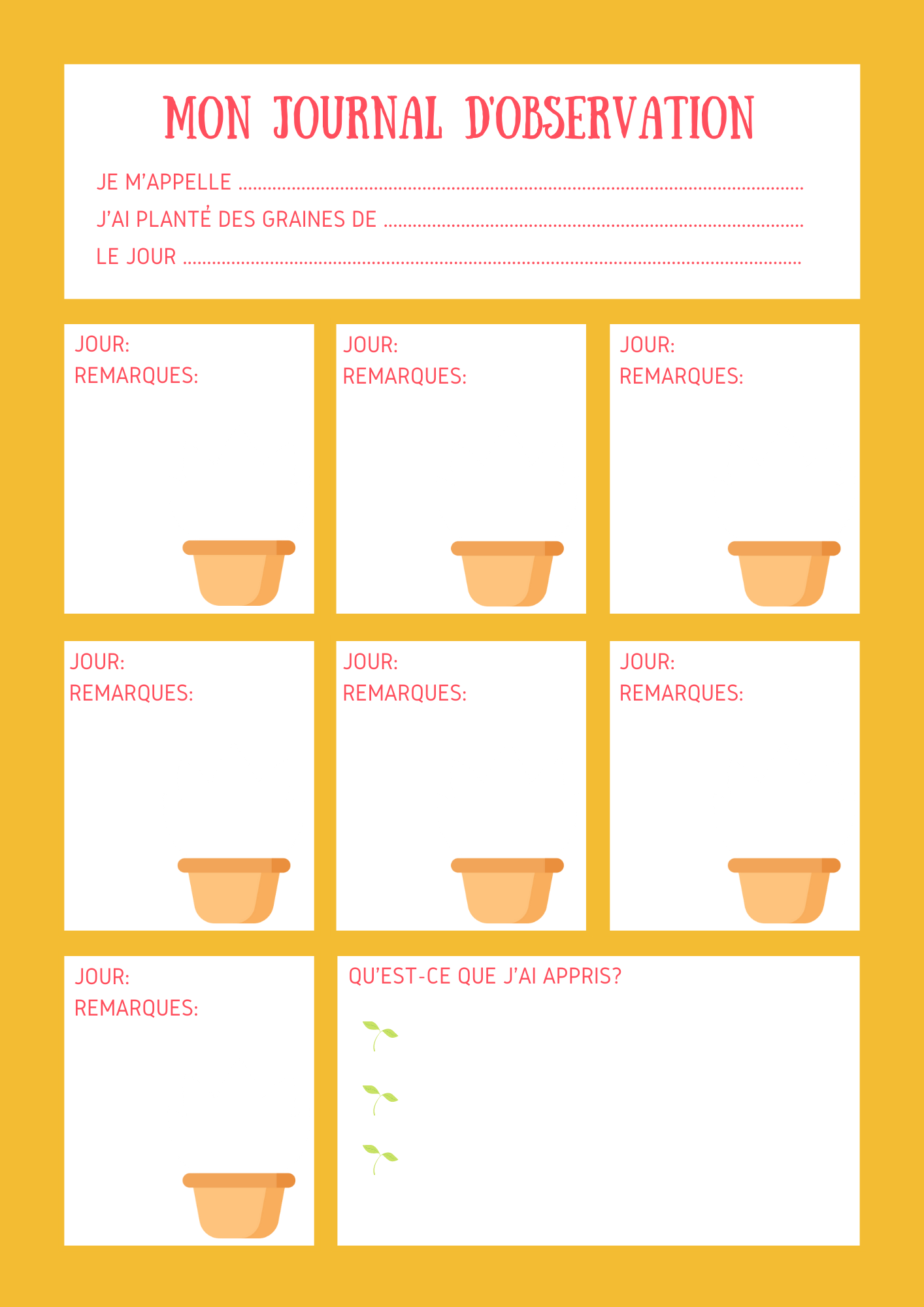 Plantilla de observación para el crecimiento de una planta en español y en francés.