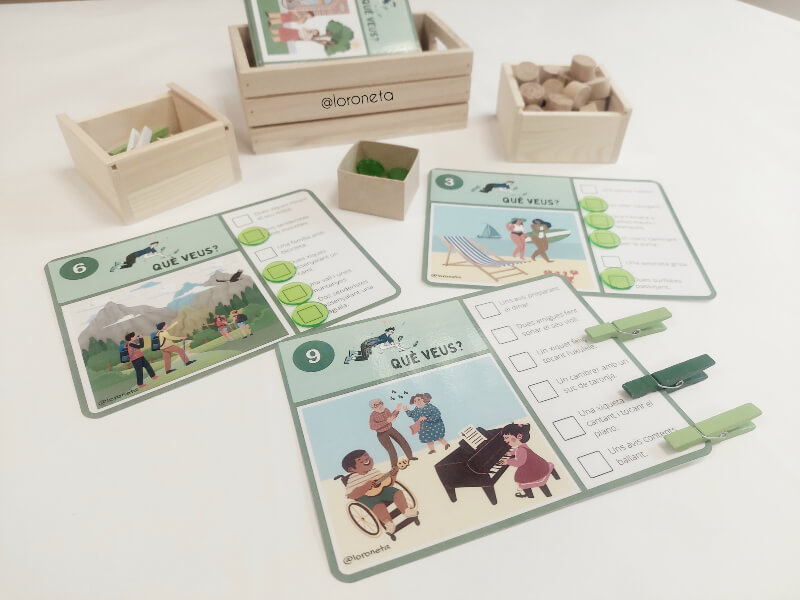 Conjunt de 20 targetes per a treballar la comprensió lectora. Cadascuna presenta una il·lustració amb una situació o escenari. Al marge dret, figuren 6 descripcions que poden ser vertaderes o falses. Es tracta de llegir-les, observar la il·lustració i extraure'n les conclusions. Si les oracions descriuen fets vertaders, marcarem la casella. (Si plastifiqueu les targetes, podeu fer servir un retolador esborrable i marcar amb una X aquelles afirmacions que són correctes, si no, podeu marcar-les amb un botó, unes pinces, una fitxa de parxís o trosset de plastilina.) El material va dirigit a xiquetes i xiquets de cicle inicial i de cicle mitjà de Primària.