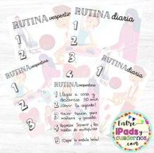 Hay dos opciones: versión niño y versión niña. Son absolutamente iguales, los dibujos están haciendo las mismas actividades: deporte, tiempo libre y autocuidado. Además, hay dos versiones donde cambia el título: rutina diaria o rutina vespertina y por último, hay dos versiones: con 3 tareas y con 5.
