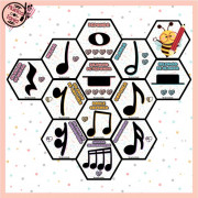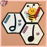 Decora tu aula de música con este panal en el que podrán ver la grafía, nombre y duración de las figuras y sus silencios.
