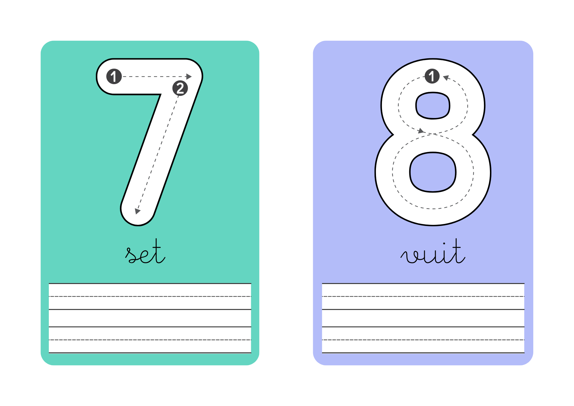 Hi ha confeccionades diferents targetes fins al número 20, per practicar amb els nombres a Educació Infantil i Cicle Inicial, de forma progressiva i autònoma.