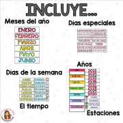 Este material contiene actividades para ayudar a ampliar el aprendizaje de sus estudiantes: numeración, meses del año, año, estaciones, fechas importantes, días de la semana y tiempo atmosférico.